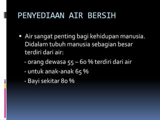 . Berkembangnya teknologi kesehatan berbasis digital telah memungkinkan setiap orang untuk mempelajari dan menilai diri mereka sendiri dan berpartisipasi aktif dalam. Dapat dikatakana sanitasi ini merupakan perilaku manusia yang disengaja untuk membudayakan kebiasaan hidup bersih dan sehat untuk mencegah manusia terkontaminasi langsung dengan bahan-bahan kotor dan berbahaya dengan harapan bisa. Menyelenggarakan pemancangan tiang pertama Sistem Penyediaan Air Minum SPAM Tanah Merah untuk penyediaan air minum kapasitas 200 liter per detik di Jalan Irigasi Kelurahan Karangsambung.